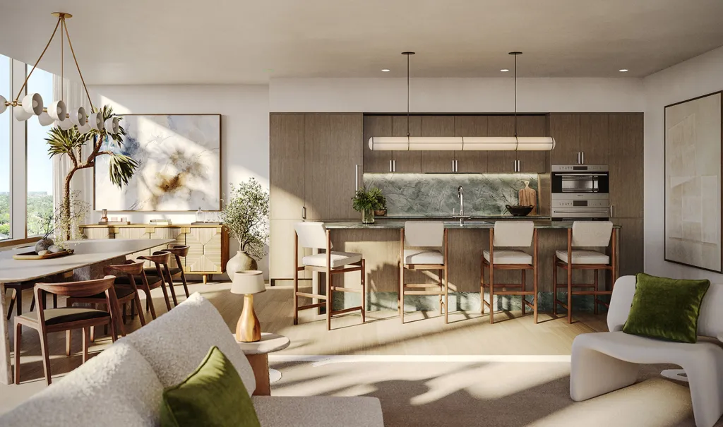 Envisioned in tune with the architectural flow of THE WELL, each residence is thoughtfully curated and designed to sustain every aspect of your holistic health. Generous, sunlit layouts allow for flexibility and range of motion, while woods in flooring and cabinetry nurture your connection to nature.